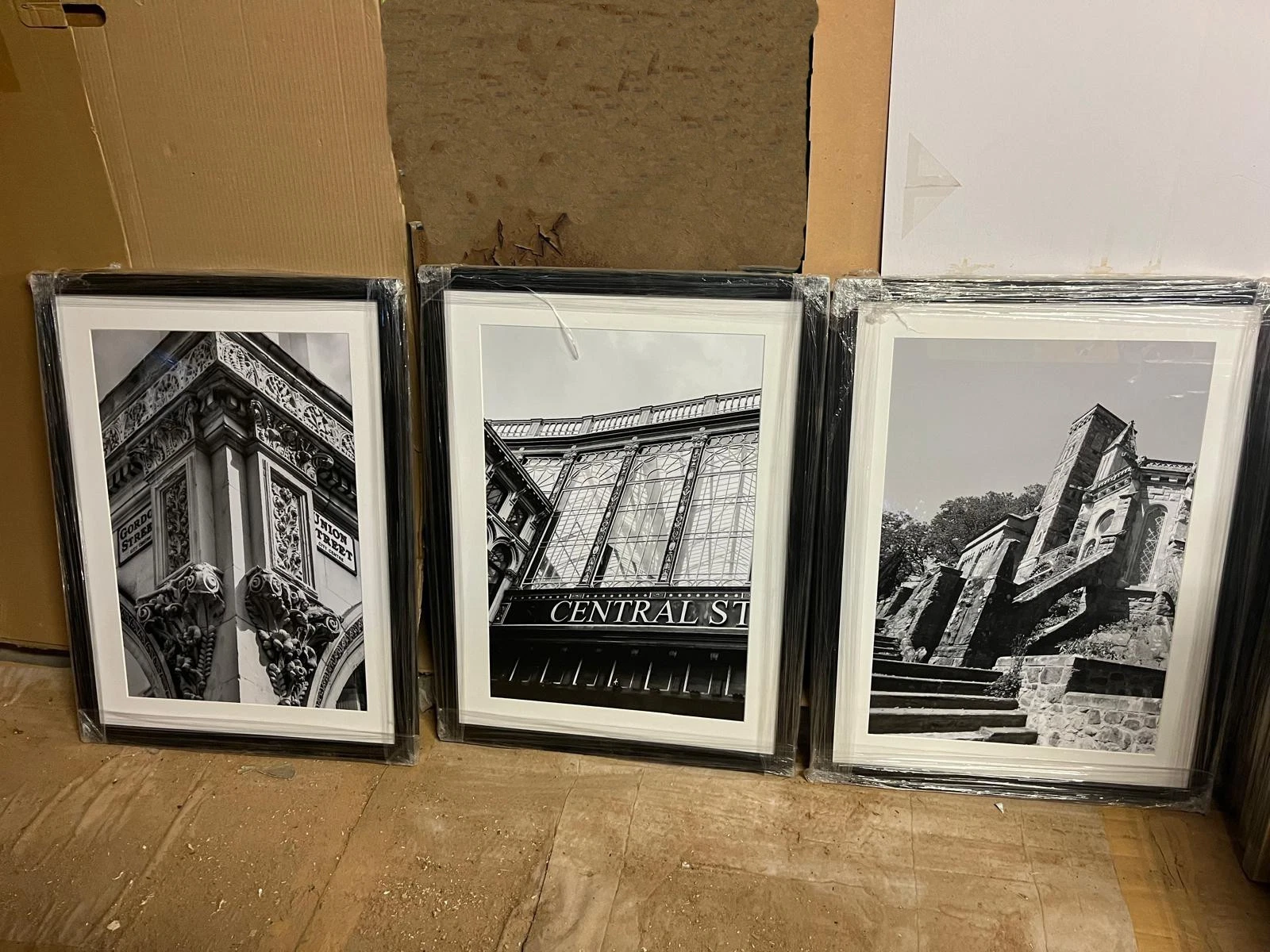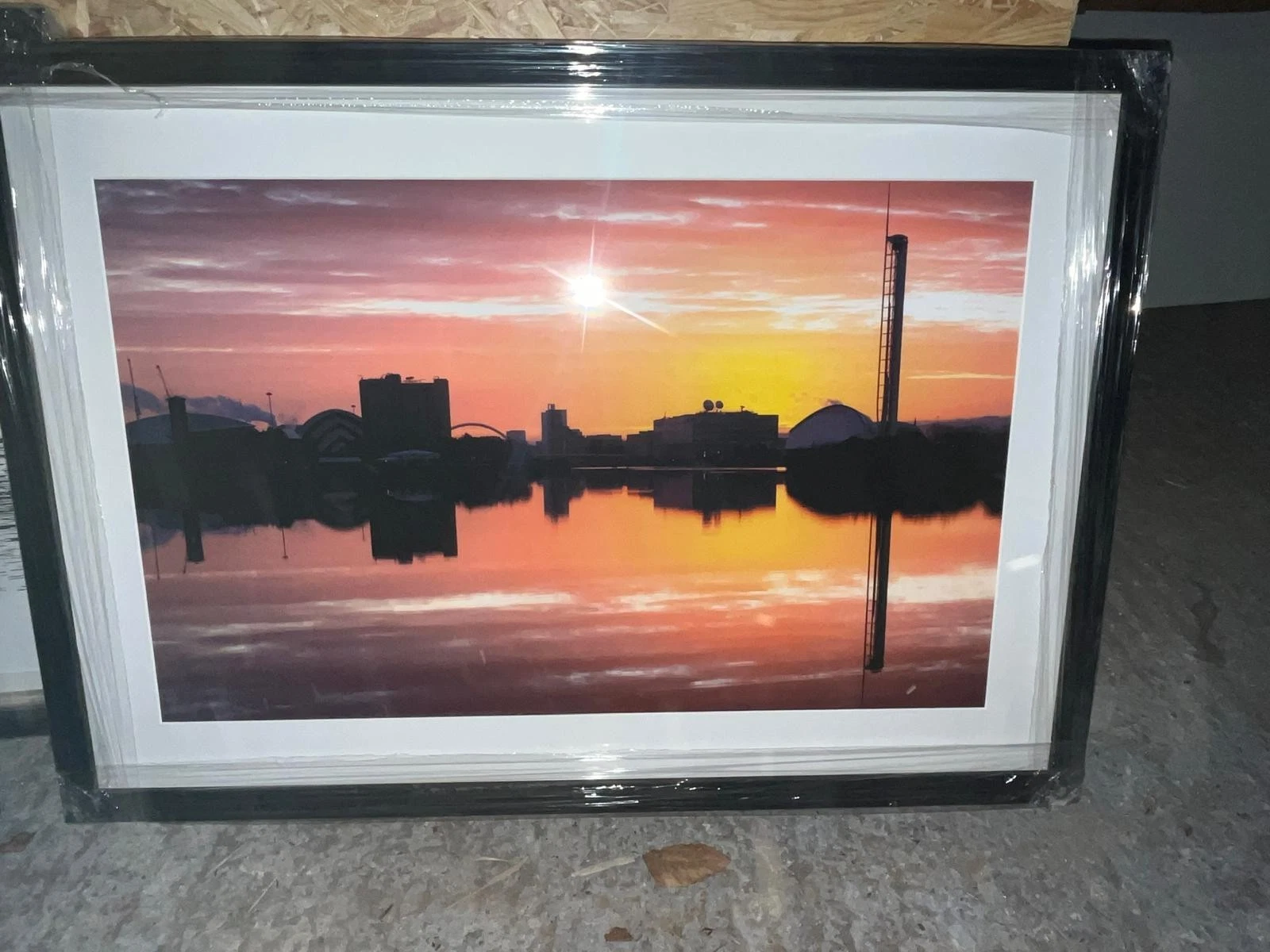 Due to Company closure, we have over 150 finished framed prints in black moulding, some with mounts, of various images. Some with security fittings. Most were for a cancelled hotel project in Glasgow, so many Glaswegian images.